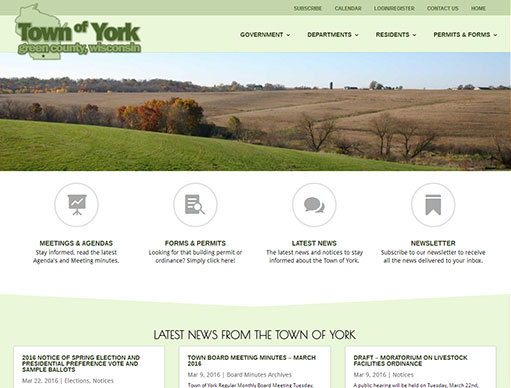 York is in the most southerly bottom tier of counties of the state of Wisconsin, but in the top tier of towns (as Wisconsin calls “townships”) in that county of Green. Just 7 miles SW of New Glarus and 20 miles from Madison, WI.